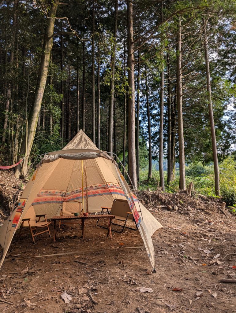 わなみんの森は、何もなかった山を家族とみんなで切り開いてきた、まだまだ発展途上のキャンプ場です。
